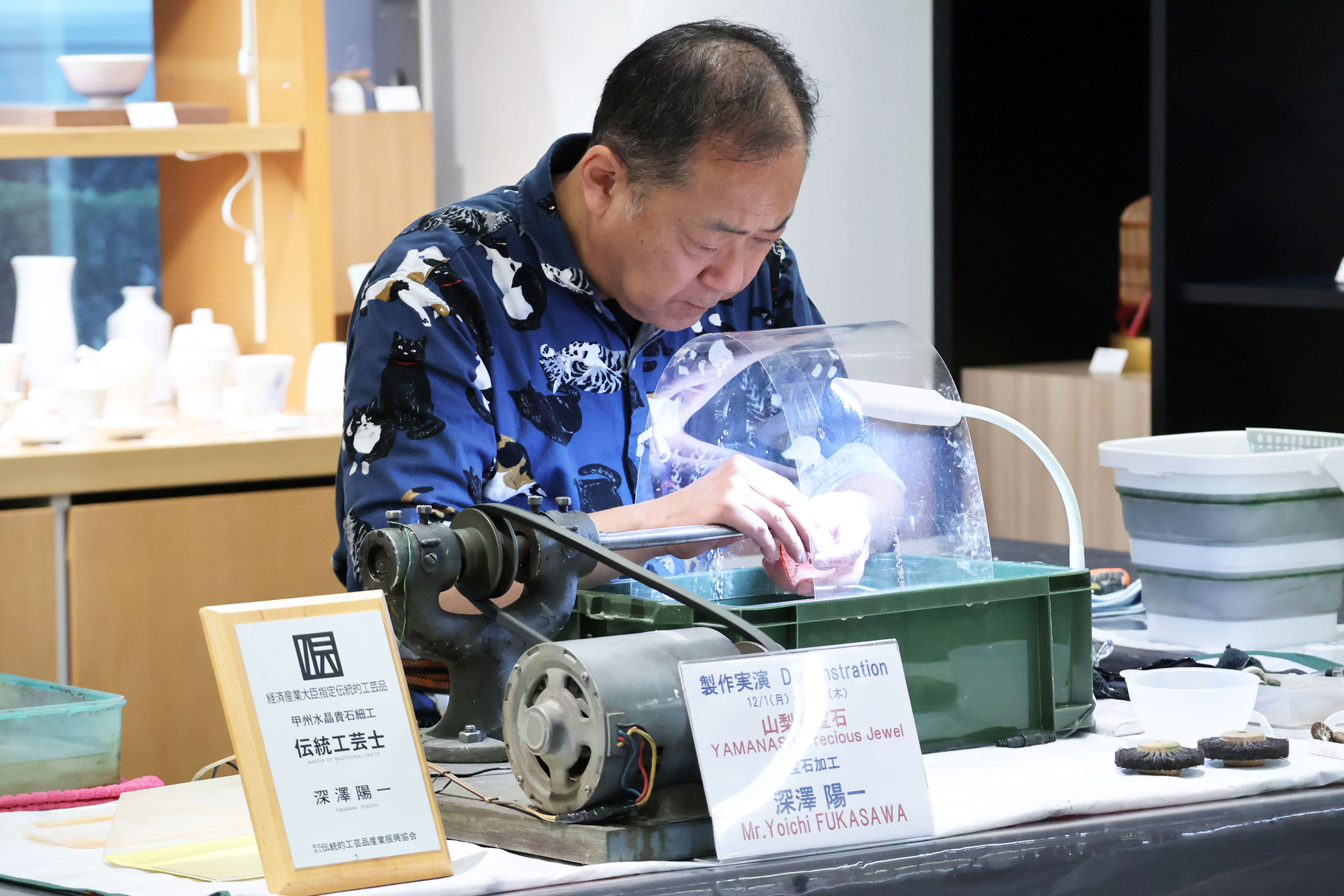 甲州水晶貴石細工、甲州印伝、甲州手彫印章、甲州雨畑硯、西嶋手漉和紙、甲州武者のぼり/鯉のぼり、甲州鬼瓦、親子だるま、山梨貴宝石、富士勝山スズ竹細工