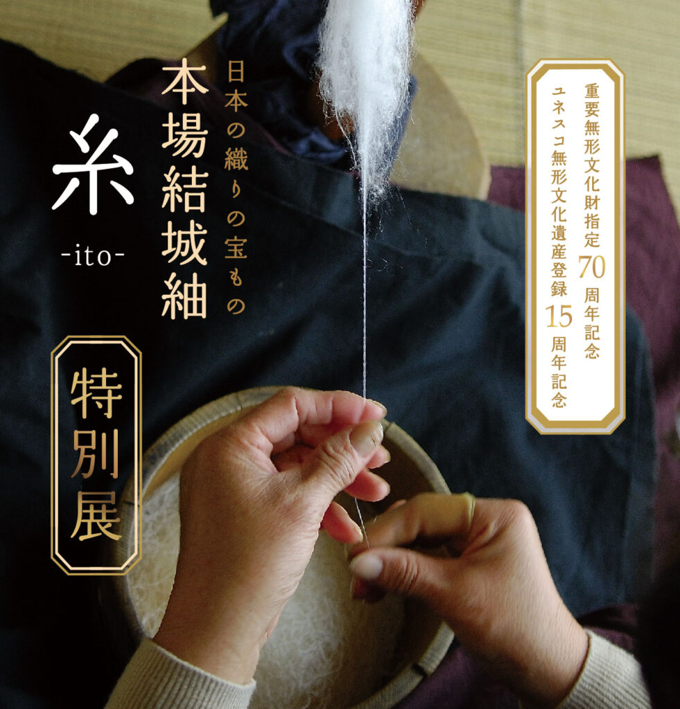 「結城紬」(指定時の名称)の『重要無形文化財指定70周年』および『ユネスコ無形文化遺産登録15周年』を記念した特別展です。新作発表をはじめ、実演や着心地体験などを通して「本場結城紬」の魅力を広くお伝えいたします。