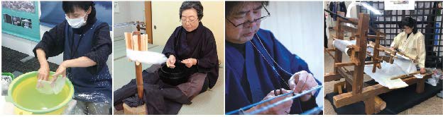 『真綿かけ』『糸つむぎ』『絣くくり』『地機織り』